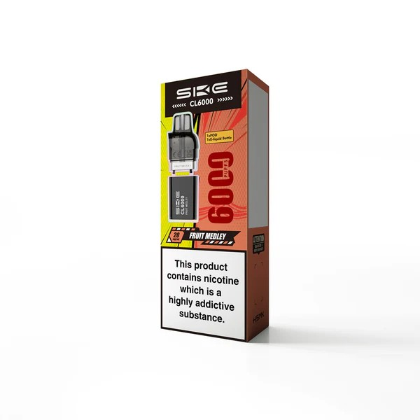 The SKE Crystal CL6000 prefilled pods are designed to be used with the SKE CL6000. Included is a 2ml prefilled pod along with a 10ml refill container which together deliver up to 6000 puffs when paired with your device. Each inhale produces a discreet amount of vapour for an MTL (Mouth To Lung) inhale, which mimics the feel of a cigarette.